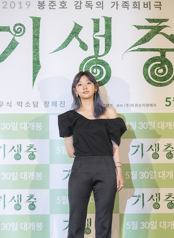 칸 국제영화제에서 황금종려상을 수상한 영화 '기생충'의 배우 박소담이 28일 오후 서울 용산구 용산CGV에서 열린 언론배급시사회에서 포즈를 취하고 있다.