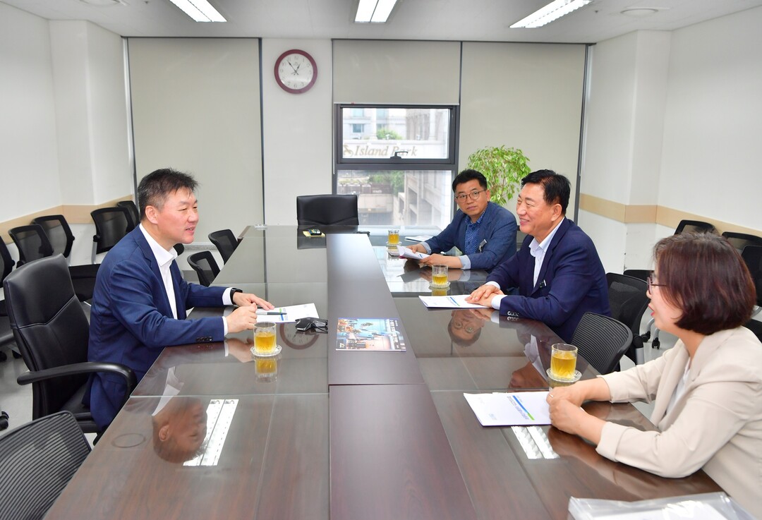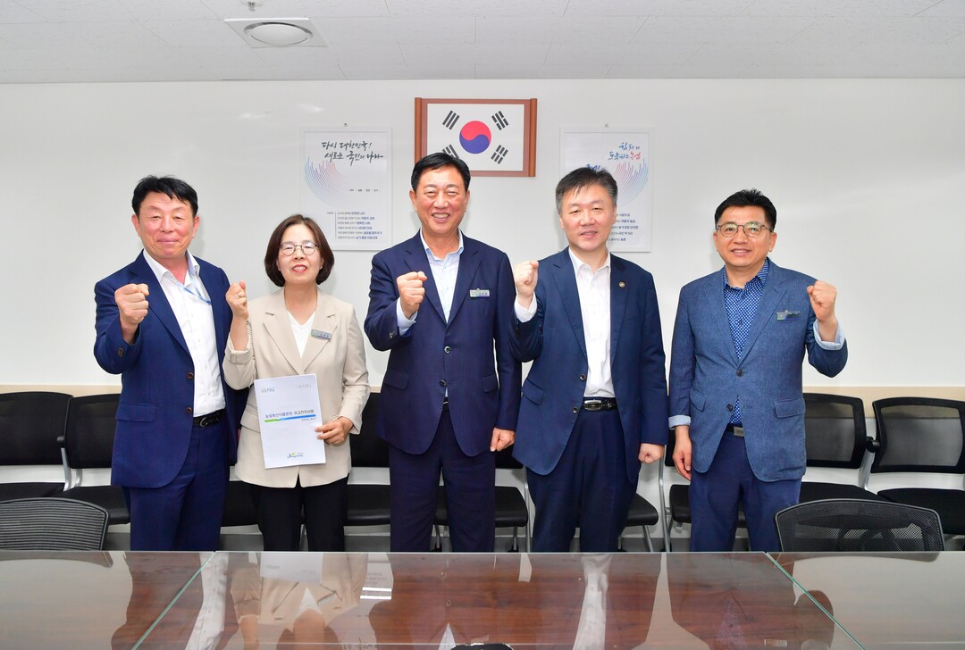 | ▲ 김한종 장성군수가 6일 박범수 농림축산식품부 차관과 면담을 갖고, 수출주도형 가정식 대체식품 선도지구 조성, 인공지능 챔버형 스마트팜 단지화 사업, 국립 아열대 자생식물원 조성 등 농업‧산림분야 국고건의사업 6건에 대한 협조를 요청했다. [장성군 제공] |