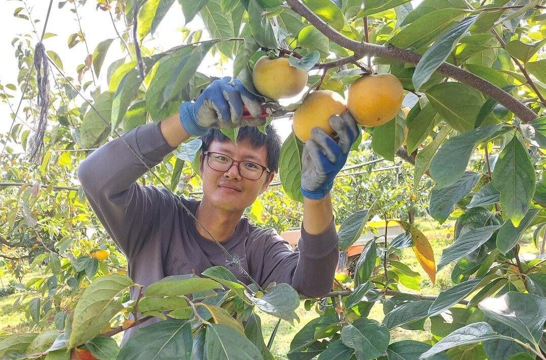 | ▲ 전남 영암의 박문수 대표가 단감 ‘감풍’을 수확하고 있다. [영암군 제공] |