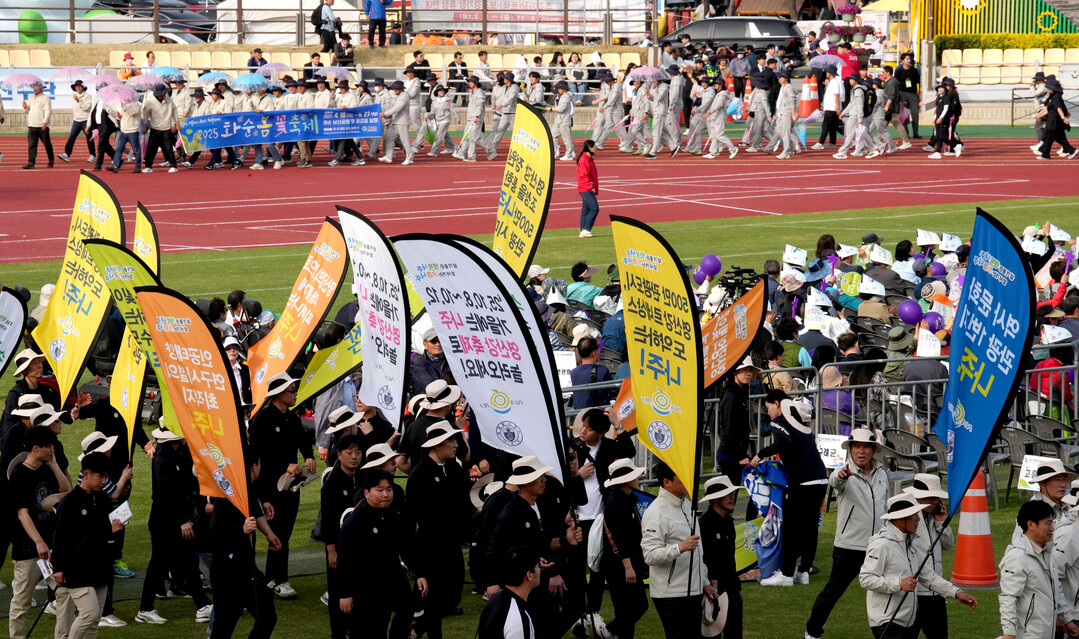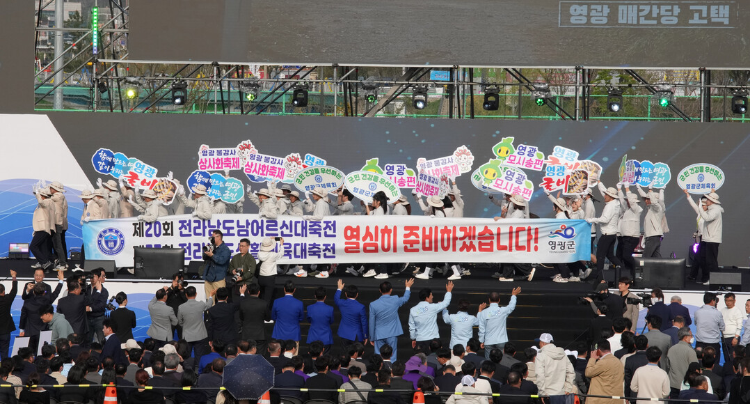 | ▲ 18일 장성 옐로우시티 스타디움에서 열린 '제64회 전라남도체육대회' 개막식에서 영광군 선수단이 입장하고 있다. [전남도 제공] |