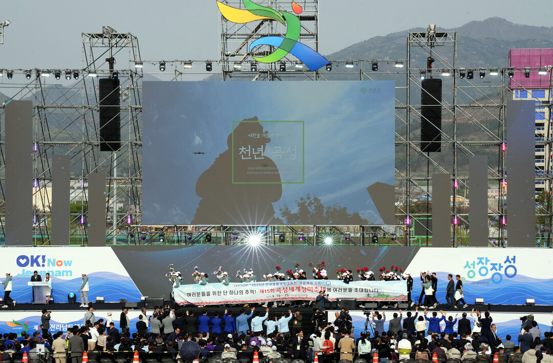 | ▲ 18일 장성 옐로우시티 스타디움에서 열린 '제64회 전라남도체육대회' 개막식에서 곡성군 선수단이 입장하고 있다. [전남도 제공] |