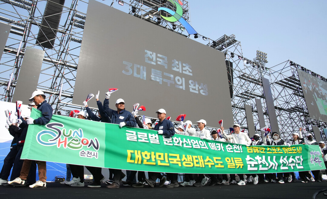 | ▲ 18일 장성 옐로우시티 스타디움에서 열린 '제64회 전라남도체육대회' 개막식에서 순천시 선수단이 입장하고 있다. [전남도 제공] |