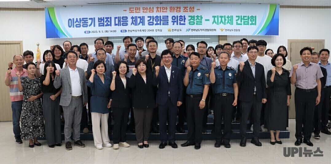 | ▲지난5일 전라남도자치경찰위원회가 이상동기 범죄 대응 체계 강화를 위한 경찰과 지자체간 간담회를 개최한 뒤 기념촬영을 하고 있다. [전라남도자치경찰위원회 제공] |