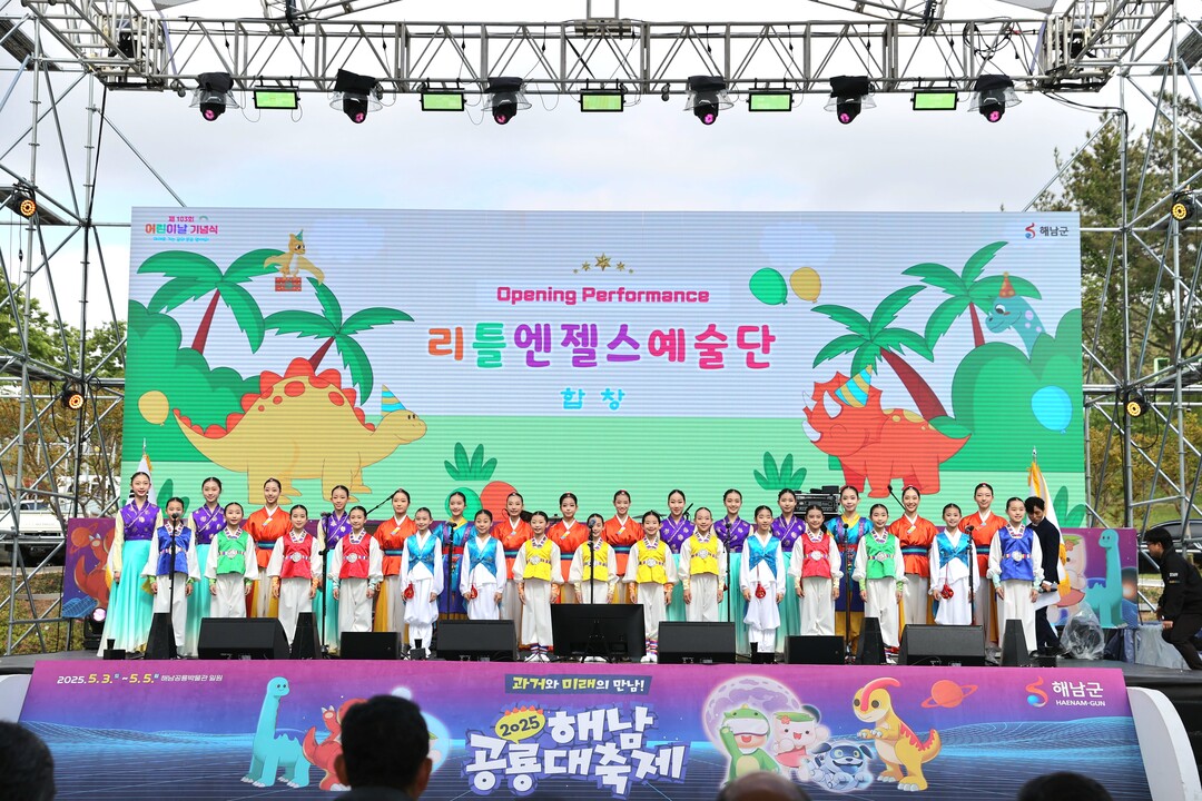 | ▲ 3일 '2025 해남공룡대축제' 개막식에서 리틀엔젤스예술단이 노래를 부르고 있다. [해남군 제공] |