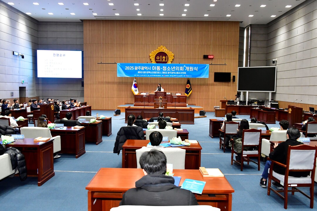 | ▲ 제5대 아동의회와 제9대 청소년의회가 지난 22일 광주시의회 본회의장에서 개원식을 갖고 있다. [광주광역시 제공] |