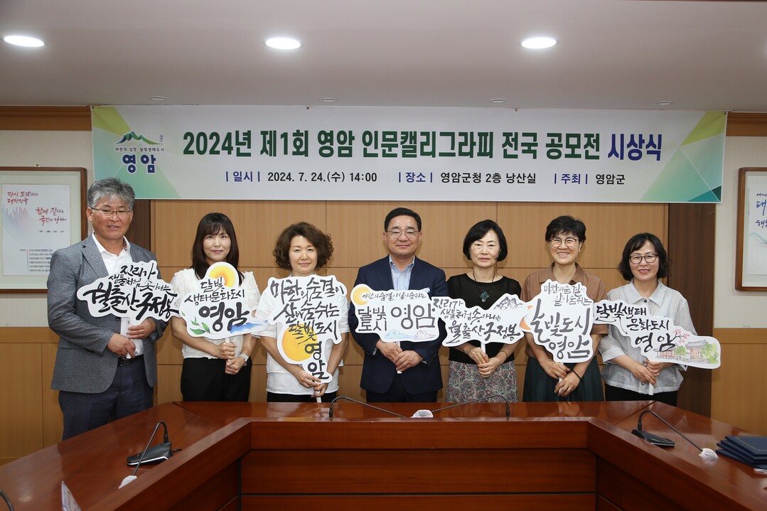 전남 영암군이 지난 24일 '제1회 영암 인문 캘리그래피 전국 공모전'에서 15개 수상작에 대해 시상했다.