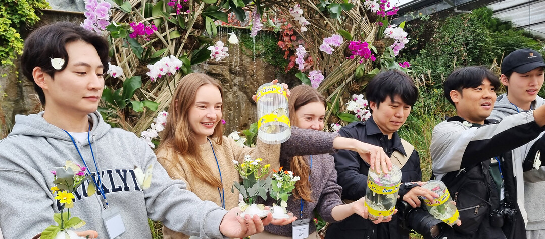 | ▲2023 대한민국 국향대전을 방문한 관광객들이 엑스포공원 자연생태관에서 나비 날리기 체험 행사를 하고 있다. 나비 날리기 체험은 매일 낮 1시에 진행되며 평일 30명, 주말 50명 선착순으로 참여할 수 있다. [함평군 제공] |