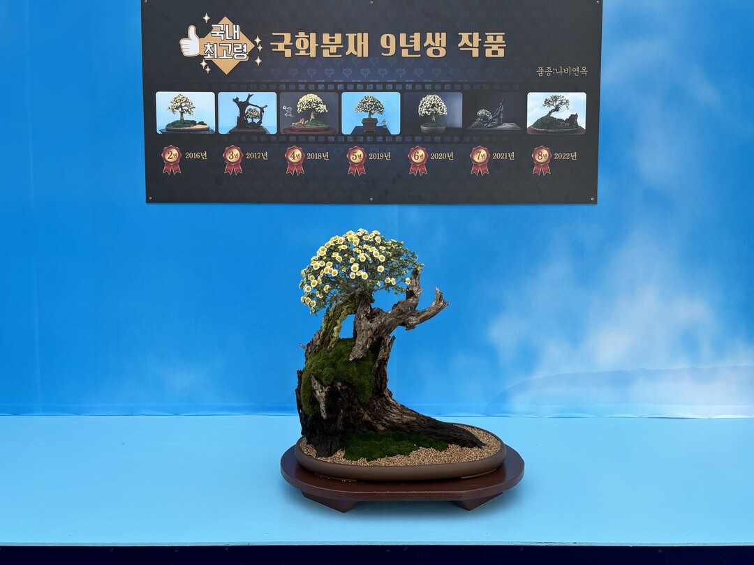| ▲ 2023 대한민국 국향대전에 전시된 국내 최고령 9년생 ;국화분재’ [함평군 제공] |