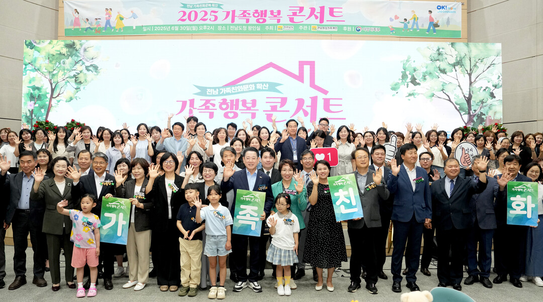 | ▲ 김영록 전라남도지사가 30일 오후 도청 왕인실에서 열린 전남 가족친화문화 확산 '가족행복콘서트' 행사에서 참석자들과 기념촬영을 하고 있다. [전남도 제공] |