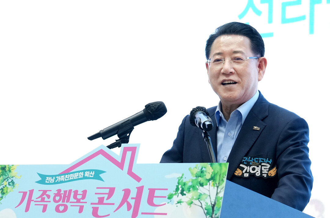 | ▲ 김영록 전라남도지사가 30일 오후 도청 왕인실에서 열린 전남 가족친화문화 확산 '가족행복콘서트' 행사에서 인사말을 하고 있다. [전남도 제공] |