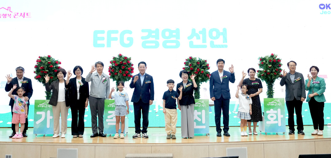 | ▲ 김영록 전라남도지사가 30일 오후 도청 왕인실에서 열린 전남 가족친화문화 확산 '가족행복콘서트' 행사에서 공공기관, 기업, 전남가족센터협회와 모든가족, 모든 사회구성원을 존중하는 가족친화사회 실천 EFG 경영선언을 하고 있다. [전남도 제공] |