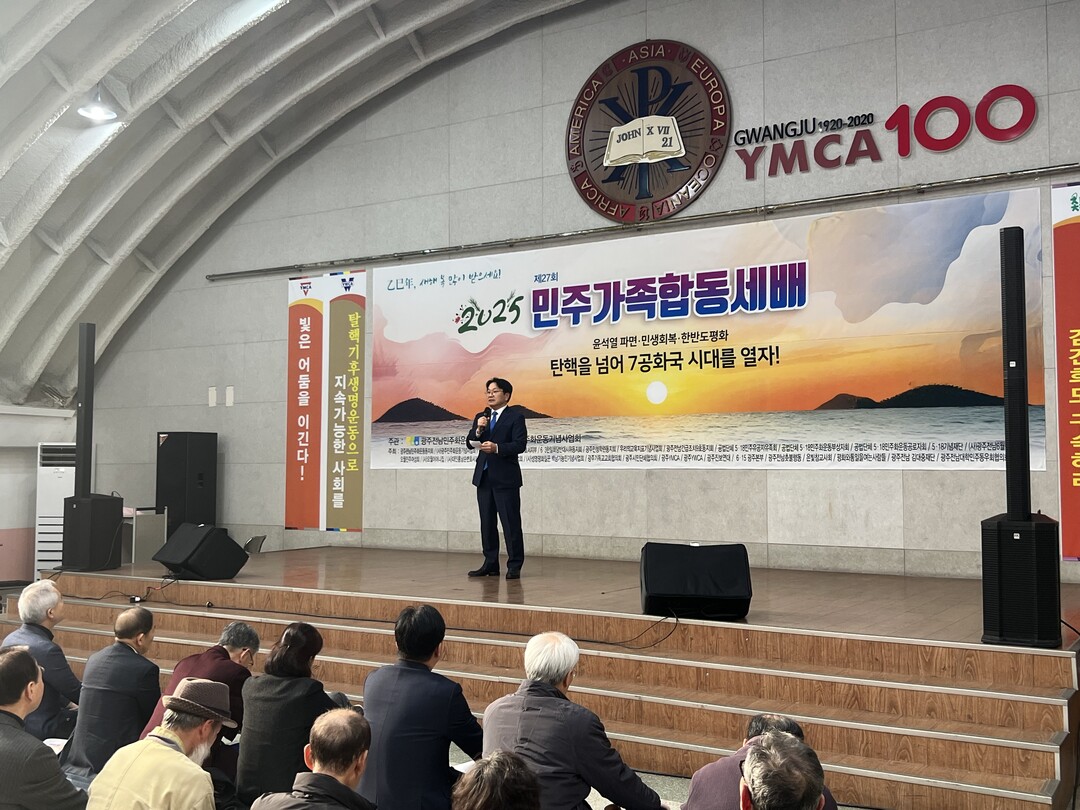 | ▲ 강기정 광주광역시장이 30일 오후 광주YMCA 무진관에서 열린 '설맞이 민주가족 합동세배'에 참석해 설맞이 덕담을 하고 있다. [광주광역시 제공] |