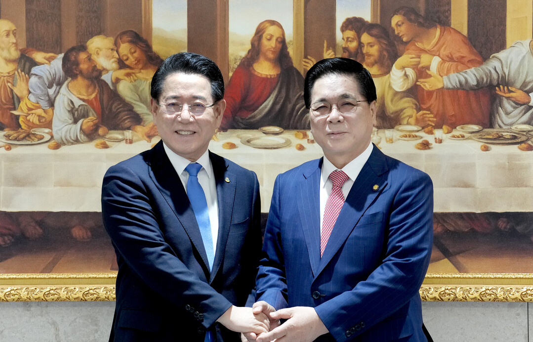 | ▲ 김영록 전라남도지사가 18일 오후 서울 여의도 순복음교회를 방문, 이영훈 목사와 대화를 나누고 있다. [전남도 제공] |