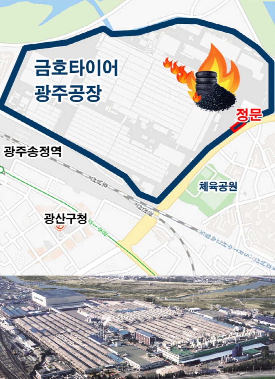 | ▲ 17일 아침 7시11분께 화재가 발생한 광주 광산구 소촌동 금호타이어 광주공장 발화지점 [뉴시스] |