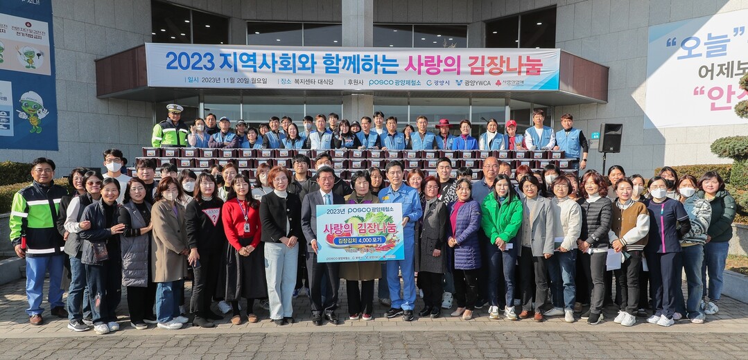 광양제철소는 10년 동안 겨울을 맞아 '사랑의 김장나눔 행사'를 열며 도움의 손길이 필요한 지역 사외복지시설, 재가노인, 장애인, 한부모가정 등 주변 이웃에게 약 2만7000포기 김치를 전달하고 있다.
