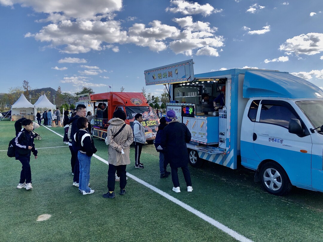 | ▲ 20일 관광객들이 '제8회 강진만 춤추는 갈대축제' 현장 곳곳에 마련된 푸드트럭에서 주문한 음식을 기다리고 있다. [강성명 기자] |