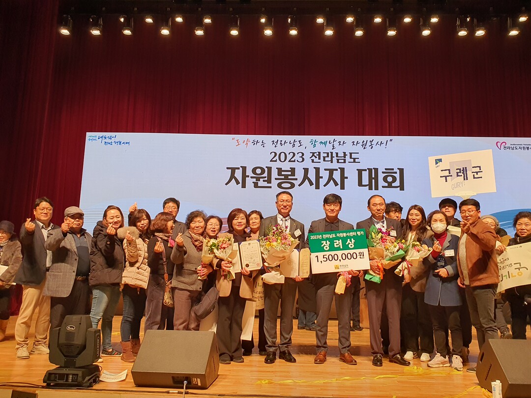 또 이날 대회에서 구례군 자원봉사센터는 2023년 전라남도자원봉사센터 이사장 감사패, 윤용준 구례군 복지기동대장은 도지사 표창, 이경원 초심회 회장은 도의회 의장 표창을 받았다.