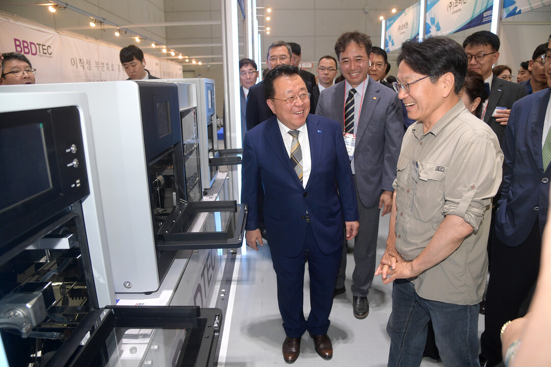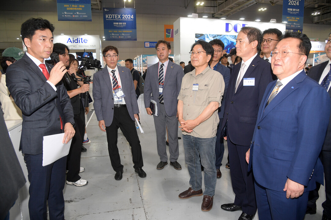 | ▲ 강기정 광주광역시장이 27일 오후 김대중컨벤션센터에서 열린 KDTEX 2024 국제학술대회에 참석하여 치과기자재전시회 개막 테이프 컷팅을 한 후 전시장 투어를 하고 있다. [광주광역시 제공] |