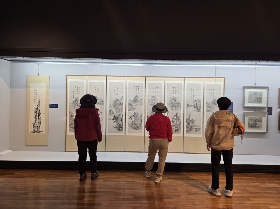| ▲ 진도군이 제주추사관에서 '찾아가는 미술관' 개최하는 가운데 관람객이 작품을 감상하고 있다. [진도군 제공] |