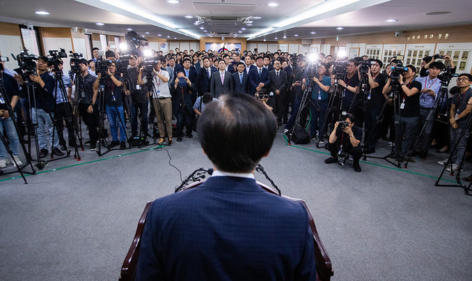 조국 신임 법무부 장관이 9일 오후 경기도 정부과천청사 법무부에서 열린 취임식에 참석하고 있다.