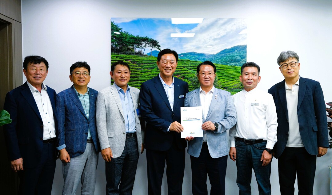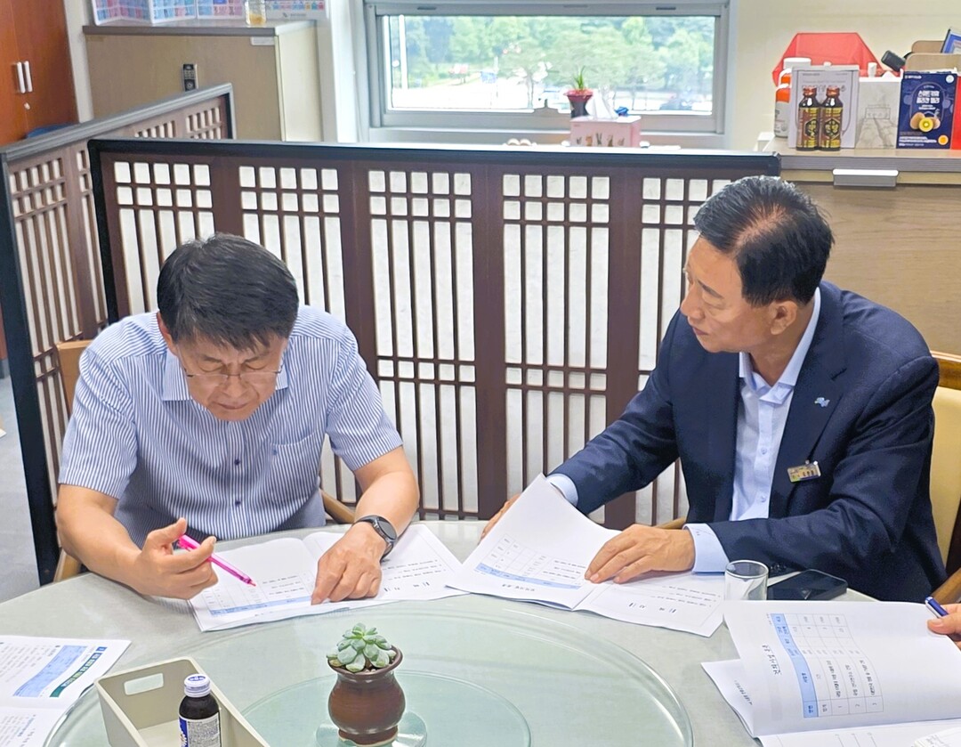 | ▲ 김한종 장성군수가 농림축산식품해양수산위원회 서삼석 의원을 만나 국회 차원의 예산 확보를 건의하고 있다. [장성군 제공] |