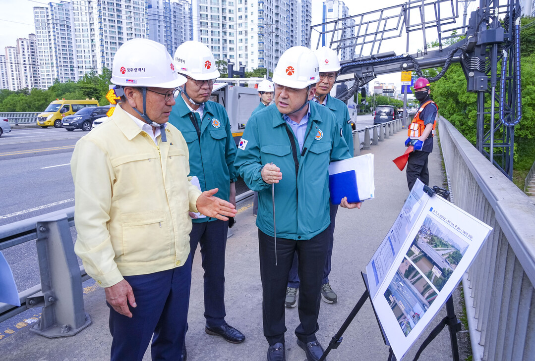 | ▲ 강기정 광주광역시장이 지난 20일 오후 광산구 하남대교를 찾아 안전점검을 실시하고 있다. [광주광역시 제공] |