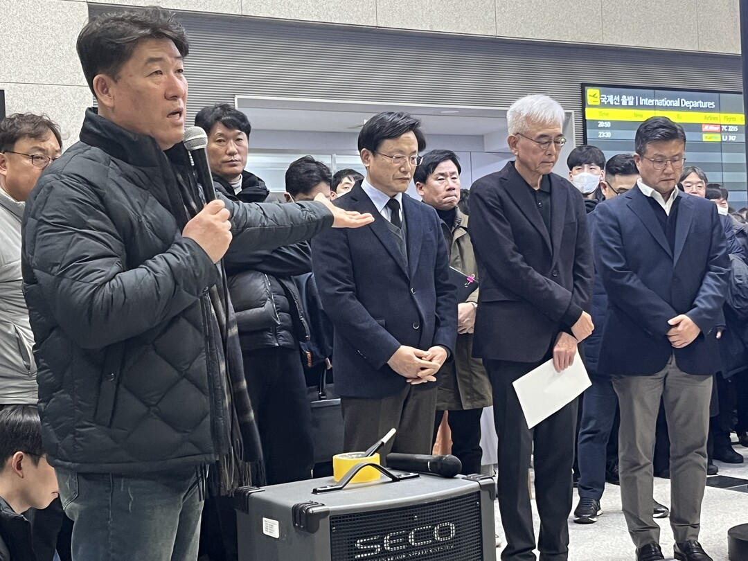 제주항공 경영을 책임지고 있는 김이배 대표가 사고 발생 11시간 만에 무안국제공항에 나타나 사과했다.