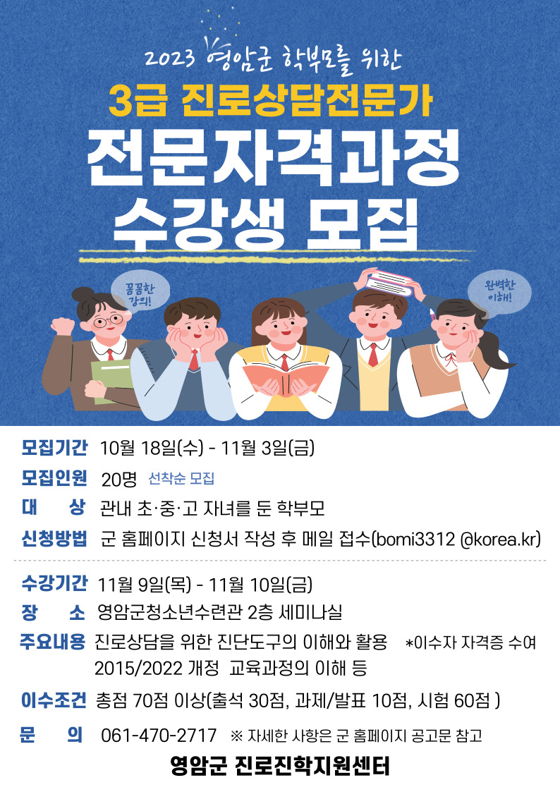 | ▲ ‘3급 진로상담전문가 자격증’ 취득 과정 개설 안내문 [영암군 제공] |