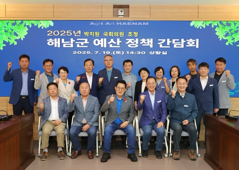 전남 해남군이 지난 19일 지역구 박지원 국회의원을 초청해 2025년 예산·정책 간담회를 열고 주요 역점사업을 논의했다.