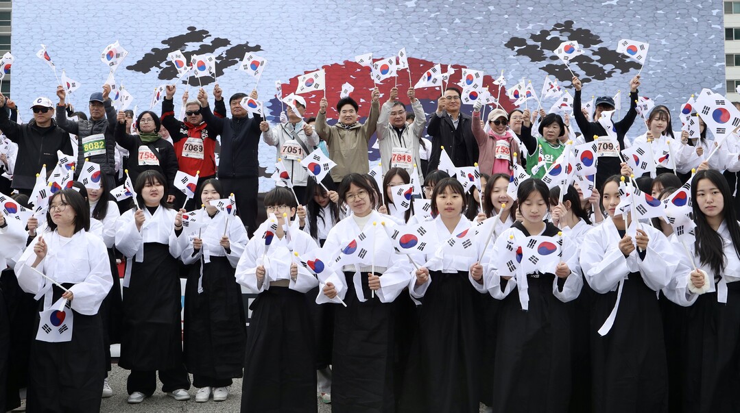 행사 첫 문은 목포 정명여자고등학교 학생들이 ‘독도는 우리 땅’ 노래에 맞춘 플래시몹으로 시작된 뒤 참가자들이 대형 태극기를 펼치는 퍼포먼스 뒤 단축마라톤이 시작됐다.