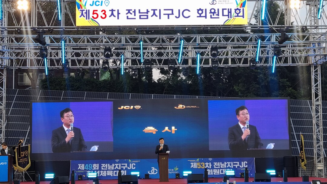 명창환 전라남도 행정부지사가 10일 순천 팔마체육관에서 열린 전남지구 청년회의소 2023 제53차 전남지구 청년회의소 회원대회에 참석했다.