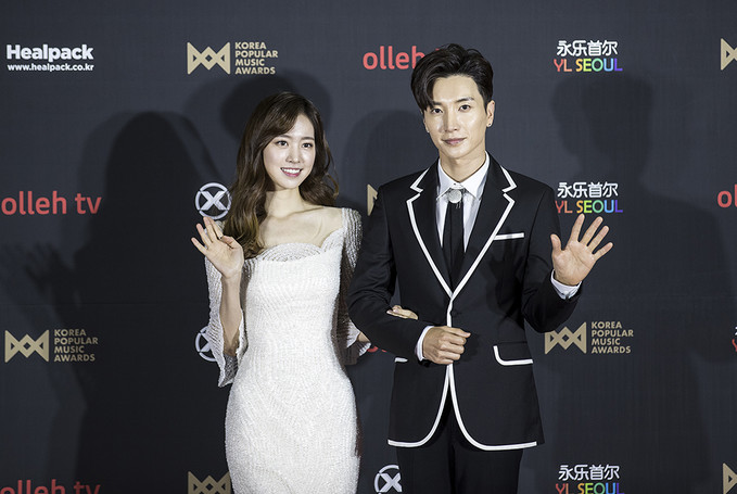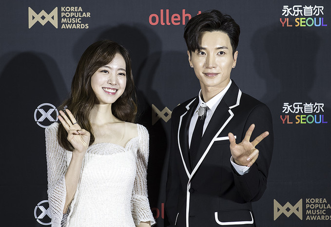 배우 진세연, 슈퍼주니어 이특이 20일 오후 경기 고양시 킨텍스에서 열린 2018 대한민국대중음악시상식(2018 KOREA POPULAR MUSIC AWARDS) 레드카펫 행사에서 포즈를 취하고 있다.