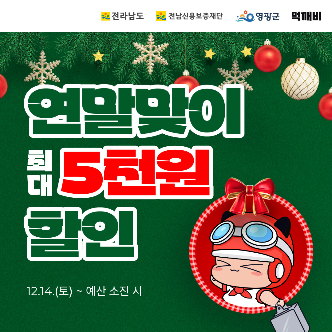 전남 영광군이 연말맞이 공공배달앱 '먹깨비'로 주문하면 최대 5000원 즉시 할인 쿠폰을 지급하는 이벤트를 추진한다고 11일 밝혔다.