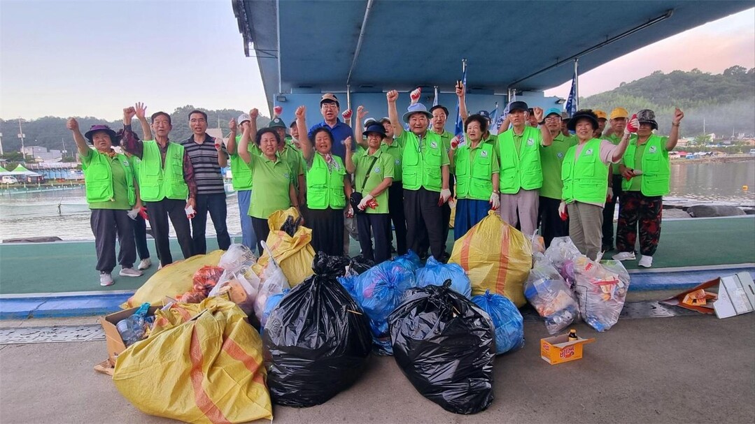 | ▲ 제17회 정남진 장흥 물축제 민간 자원봉사자들이 새벽 5시부터 축제장 곳곳에 있는 쓰레기를 주우며 구슬땀을 흘리고 있다. [장흥군 제공] |