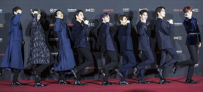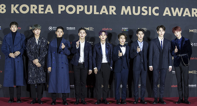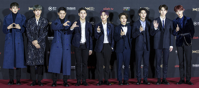 그룹 펜타곤이 20일 오후 경기 고양시 킨텍스에서 열린 2018 대한민국대중음악시상식(2018 KOREA POPULAR MUSIC AWARDS) 레드카펫 행사에서 포즈를 취하고 있다.