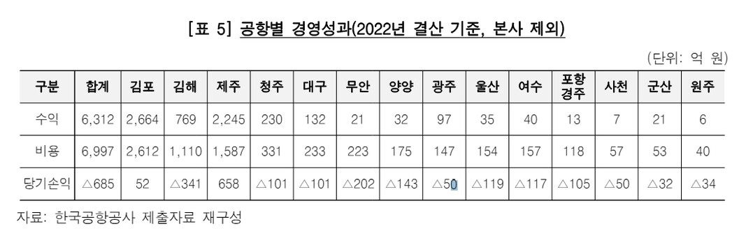이는 김해공항의 당기손실 341억 원에 이어 전국에서 두 번째로 높은 손실 규모다.
