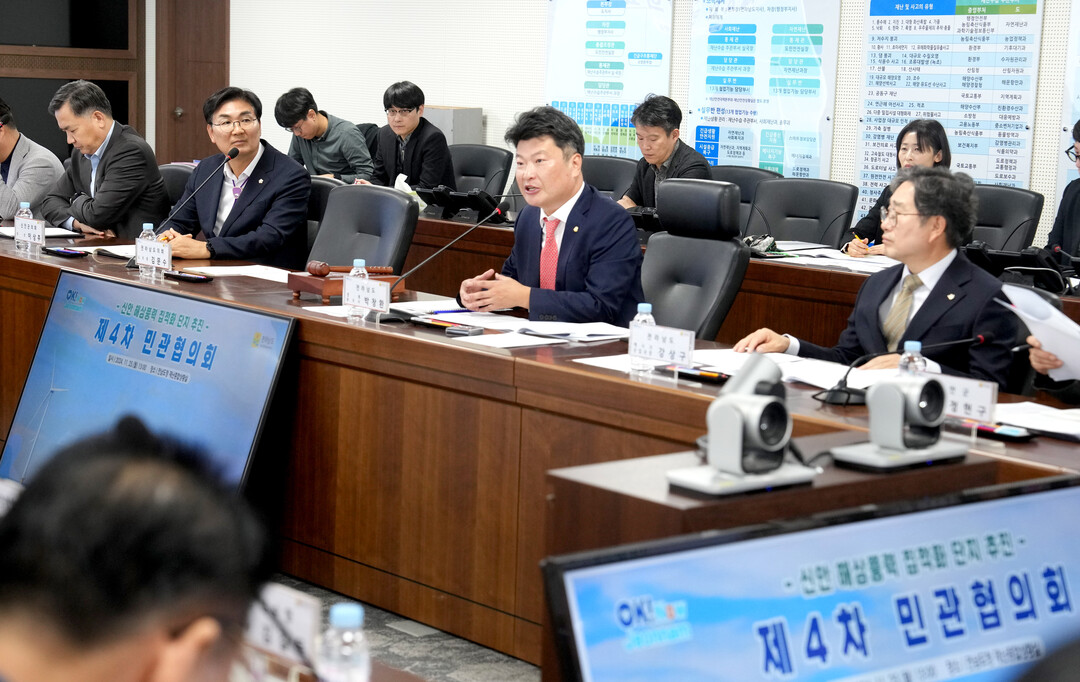 | ▲ 박창환 전라남도 경제부지사가 25일 도청 재난종합상황실에서 제4차 신안 해상풍력 집적화 단지 추진 민관협의회를 주재하고 있다. 이날 회의는 신안 해상풍력 집적화단지 지정을 위해 송전선로 관련 예정 경과지 시·군을 대상으로 민간위원과 정부위원을 추가 위촉하고 집적화단지 사업계획 변경안과 전력계통협의체 구성·운영안 등을 논의했다. [전남도 제공] |