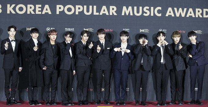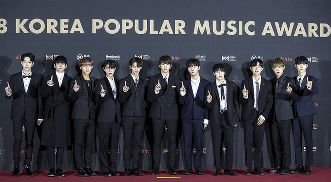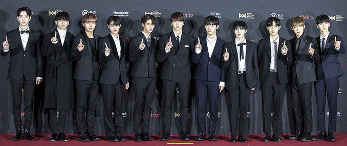 그룹 워너원이 20일 오후 경기 고양시 킨텍스에서 열린 2018 대한민국대중음악시상식(2018 KOREA POPULAR MUSIC AWARDS) 레드카펫 행사에서 포즈를 취하고 있다.