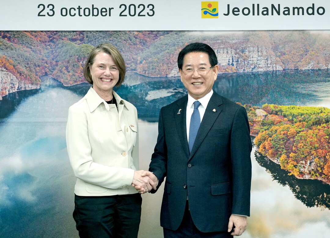 김영록 전남도지사는 23일 안네 카리 한센 오빈 주한 노르웨이 대사를 만나 해상풍력 등 재생에너지 분야와 지역 발전을 위한 교류방안을 협의했다.