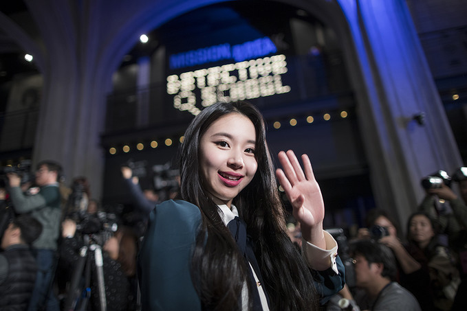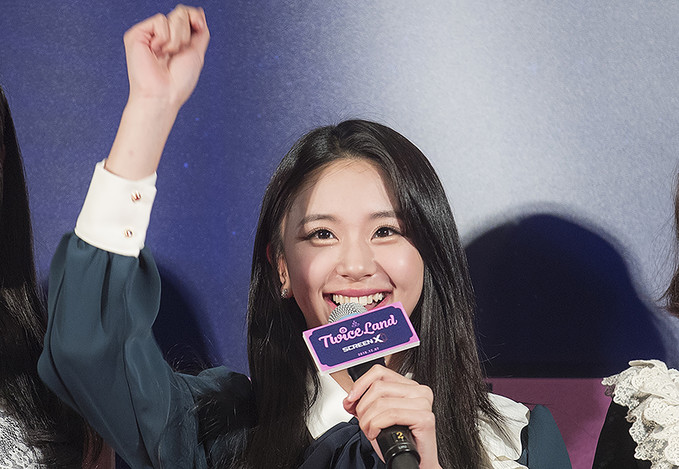 그룹 트와이스 채영이 6일 오후 서울 용산구 CGV용산아이파크몰에서 열린 영화 '트와이스랜드' 레드카펫 행사에서 팬들에게 손 인사하며 레드카펫을 밟고 있다.