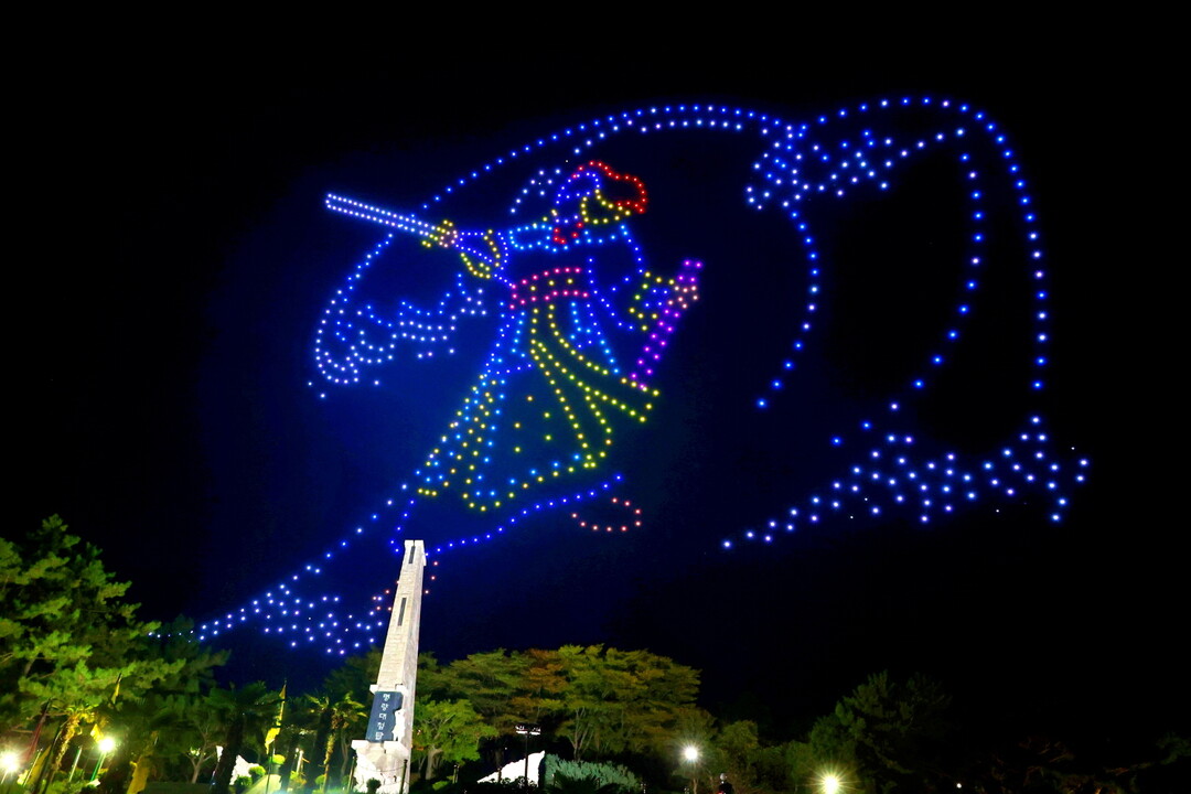 1000여 대의 드론이 하늘에서 해상전투를 재현하고, 이순신 장군의 어록을 새기는 드론쇼는 이번 행사의 백미로 눈길을 사로 잡았다.