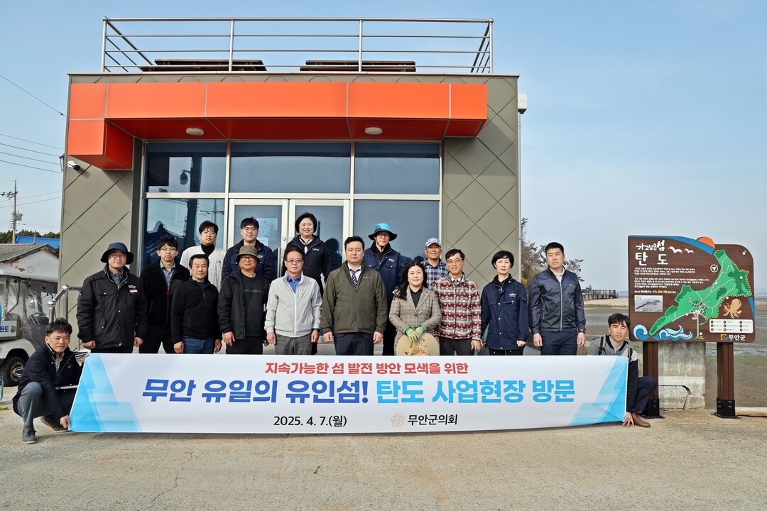 전남 무안군의회가 무안군 탄도 내 주요 사업 현장을 방문해 사업 추진 현황을 점검하고 섬 특성화 방안을 논의했다고 8일 밝혔다.