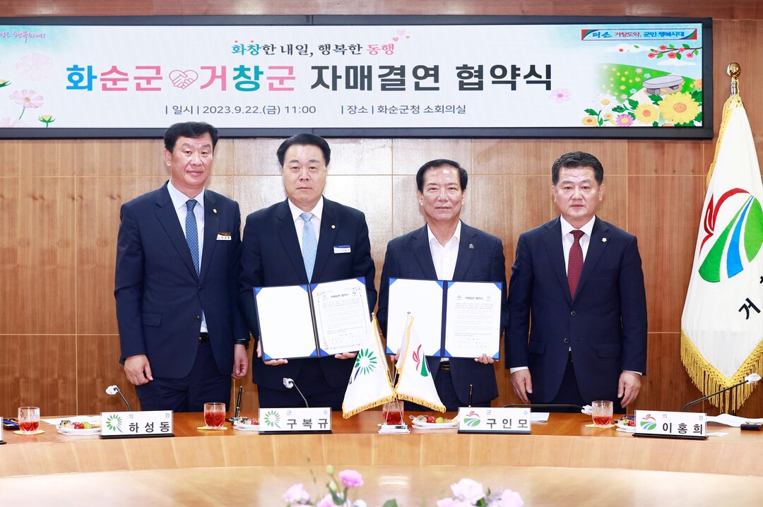전남 화순군이 지난 22일 경상남도 거창군과 상호 협력과 공동의 발전을 위한 자매결연 협약식을 개최했다.
