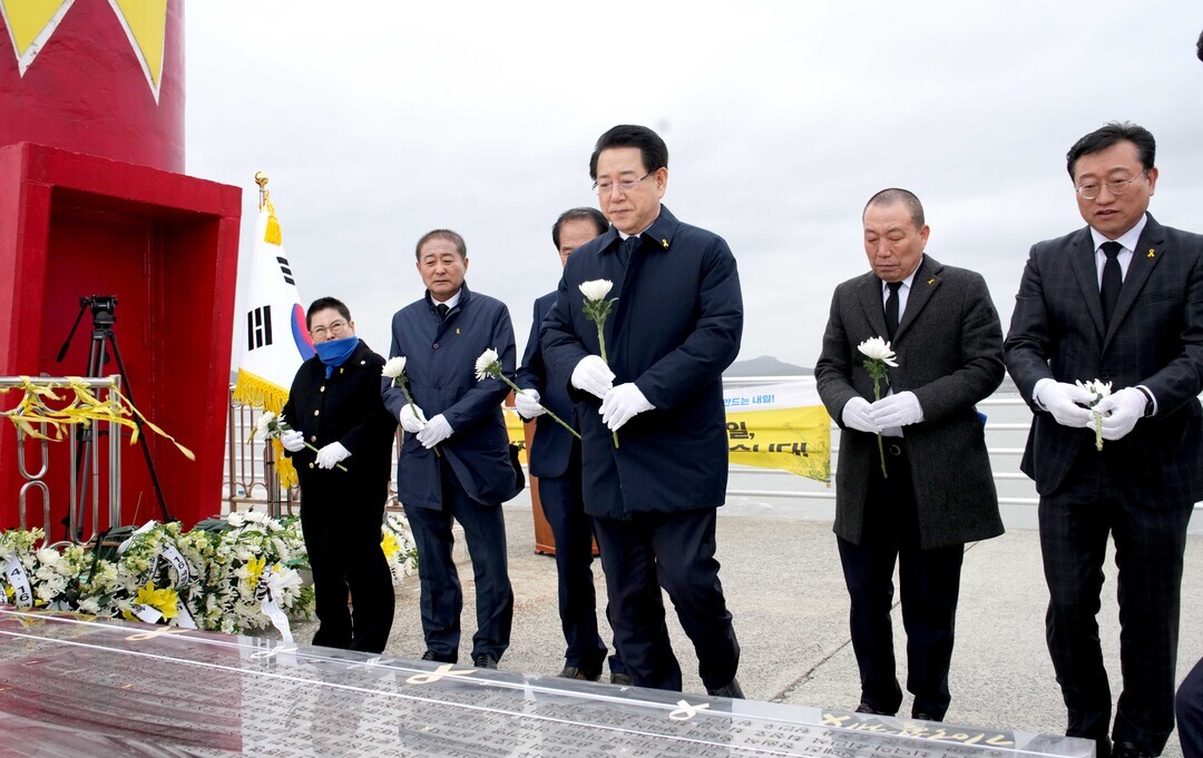 | ▲ 김영록 전라남도지사가 지난 14일 세월호 참사 11주기를 앞두고 추모 헌화를 하고 있다. [전남도 제공] |