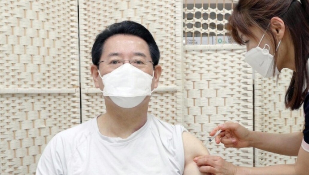 | ▲ 24일 김영록 전남도지사가 무안 삼향읍의 한 의원에서 코로나19 백신 접종을 하고 있다. [전남도 제공] |