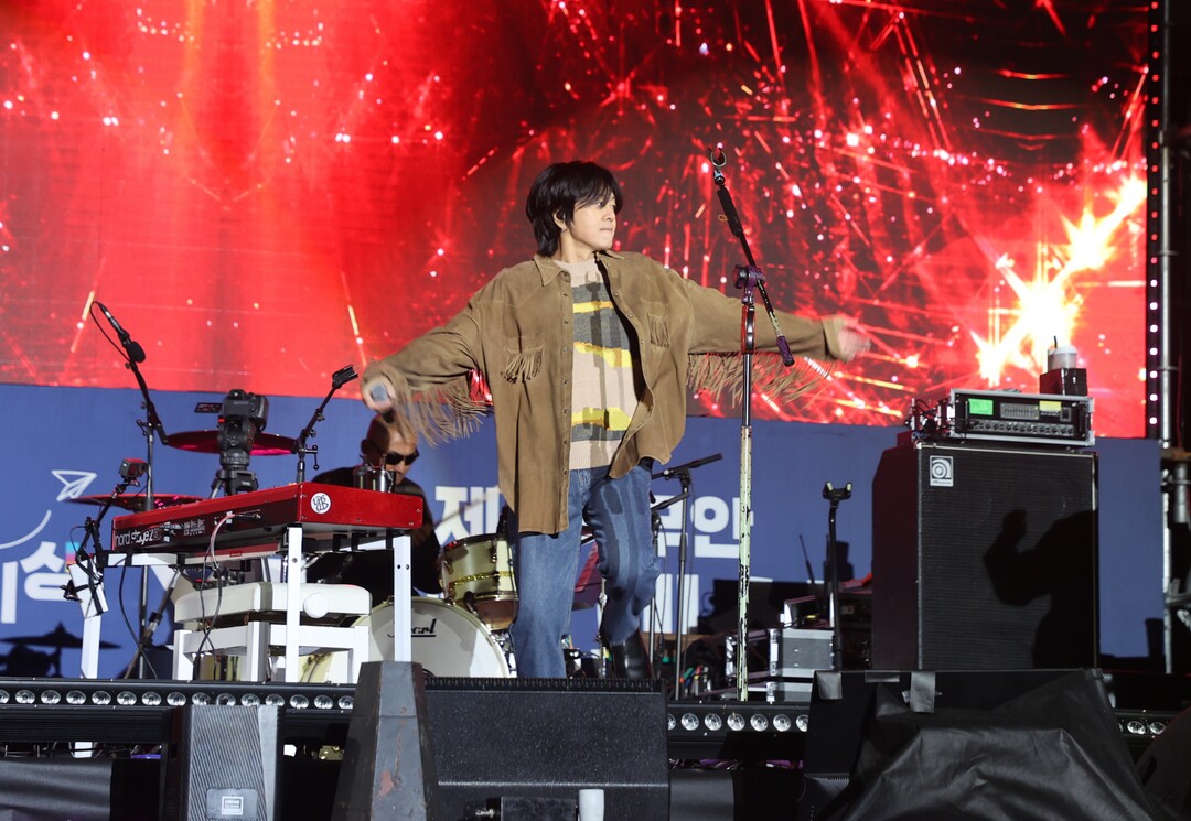 | ▲ 18일 밤 무안 YD페스티벌에서 윤도현 YB밴드가 '사랑했나봐'를 열창하고 있다. [무안군 제공] |