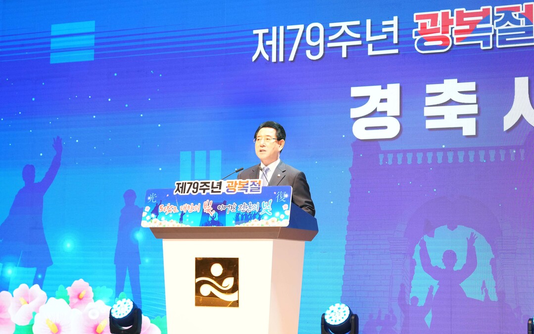 | ▲ 김영록 전라남도지사가 15일 도청 김대중강당에서 열린 제79주년 광복절 경축식에서 경축사를 하고 있다. [전남도 제공] |