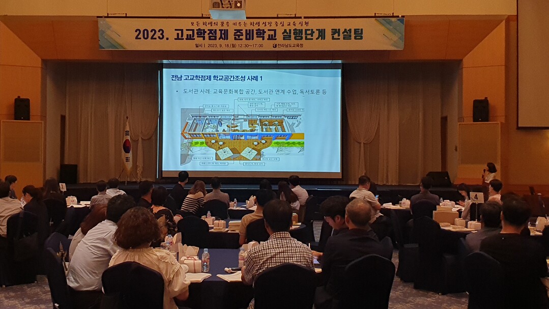 전라남도교육청이 18일 영암 호텔현대에서 서부권 일반계고 45교 교감과 업무 담당자 90명을 대상으로 ‘2023학년도 고교학점제 준비학교 계획단계 컨설팅’을 가졌다.