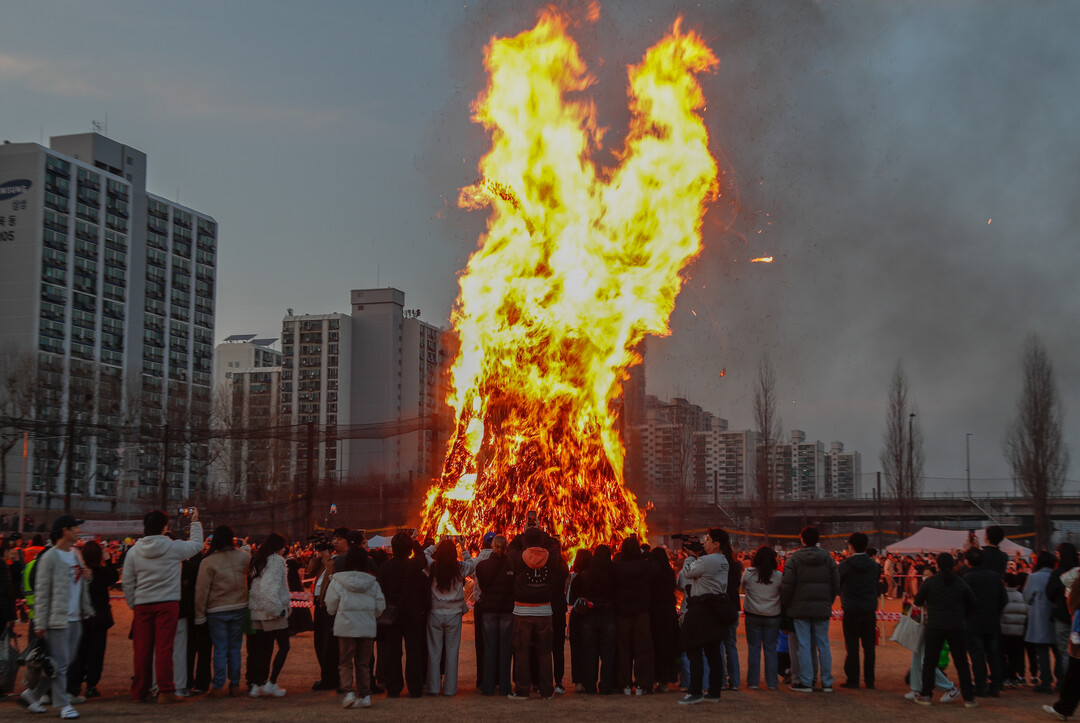 | ▲ 서울 양천구청이 28일 양천구 신정교 아래 안양천변에서 개최한 '정월대보름 민속축제' 달집태우기. [이상훈 선임기자] |