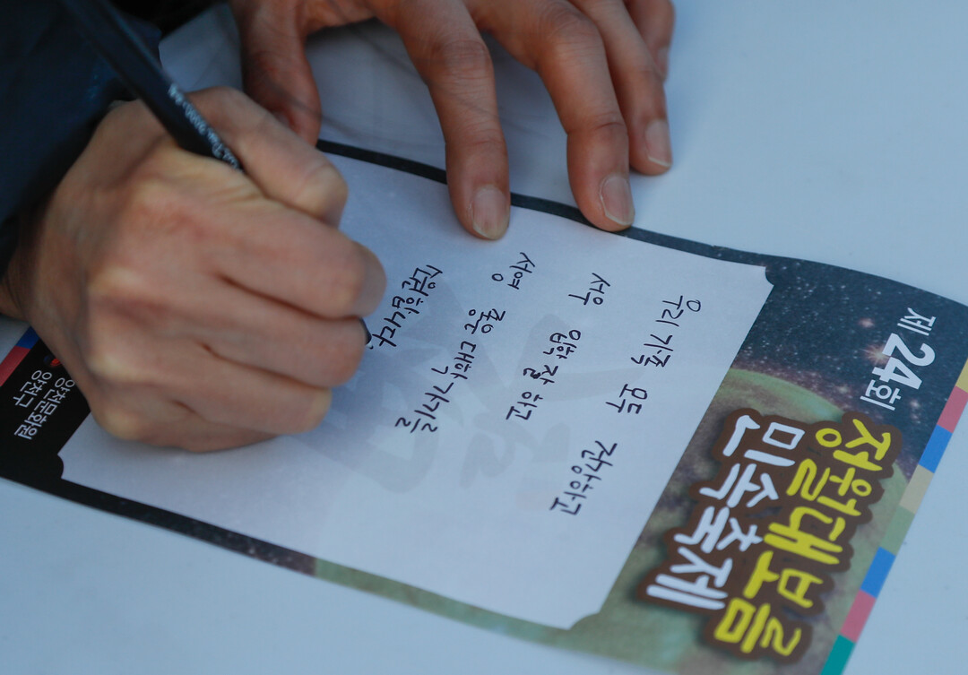 | ▲ 서울 양천구청이 28일 양천구 신정교 아래 안양천변에서 개최한 '정월대보름 민속축제'에서 참가자들이 소원지를 작성하고 있다. [이상훈 선임기자] |